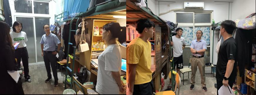 在毕业生文明离校和期末,学院党委副书记高栋梁带领辅导员老师深入学生宿舍进行走访,深入了解学生学习和生活情况,并对学生住宿行为进行安全隐患排查。