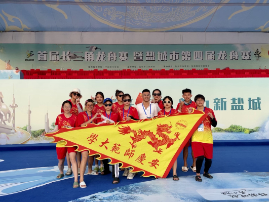 9月17日-20日,首届长三角龙舟赛在江苏省盐城市中华海棠园举行。本次大赛由国家体育总局体育文化发展中心和中国龙舟协会担任技术指导,盐城市人民政府主办,共有来自长三角地区的31支队伍近千名选手参与赛事。许贵泉老师带领的安庆师范大学女子龙舟队代表安徽省参赛并荣获一等奖。