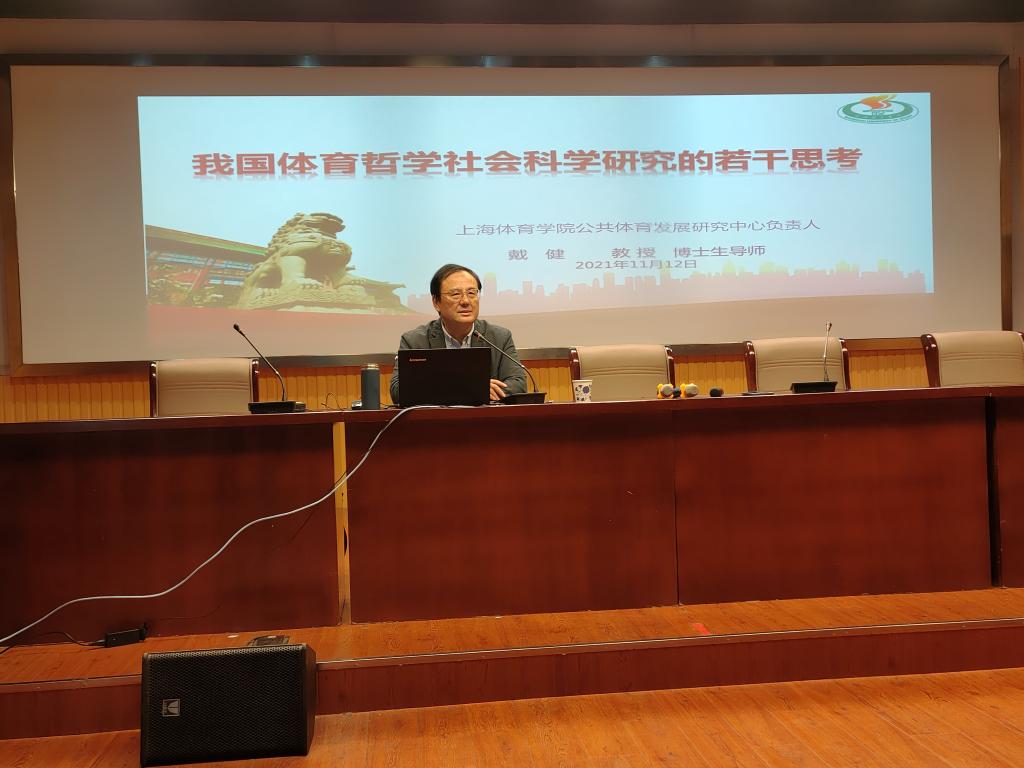 11月12日,应英国正版365官方网站邀请,上海英国正版365官方网站博士生导师戴健教授在外国语学院多媒体教室作了题为《我国体育哲学社会科学研究的若干思考》的专题讲座,英国正版365官方网站的部分教师、全体硕士研究生、2020级体育表演专业聆听了本次报告,报告会由英国正版365官方网站副院长林秋菊教授主持。