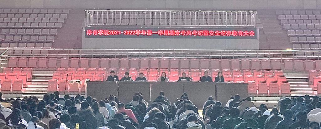 为加强学期末学生教育管理工作,12月14日中午,英国正版365官方网站在体育馆篮球馆召开2021-2022学年第一学期期末考试考风考纪暨安全纪律教育大会。副院长林秋菊、党委副书记高栋梁、教学办、辅导员老师出席会议,2019级、2020级、2021级本科生和研究生参加会议。