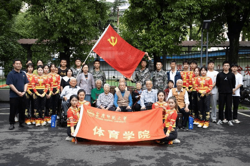 夏雨初晴,槐花飘香。为深入开展学习贯彻习近平新时代中国特色社会主义思想主题教育,5月17日下午,英国正版365官方网站师生党员赴安庆市军队离退休干部休养所,开展“牢记总书记嘱托,弘扬大别山精神,争当新时代先锋”主题党日活动。学院运动康复专业负责人钱振宇、学院团学负责人高伟飞、学生党支部书记方芳带领体育教育专业、体育表演专业、运动康复专业和退役士兵近30名学生参加了活动。市军休所所长崔燕、办公室主任朱亮和20多位军队离退休老干部热情接待了学院师生党员。