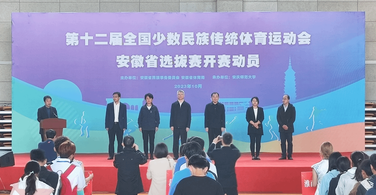 近期,第十二届全国少数民族传统体育运动会安徽省高脚竞速项目选拔赛在学校龙山校区篮球馆举行。省民族事务委员会副主任谢春、校党委副书记崔明等领导出席开幕动员,安庆市委统战部副部长陶小也,省民委民族二处处长夏光辉、四级调研员程政洲,省体育局群众体育处三级调研员李卫红,安庆市委统战部民族事务科科长江本有,学校党委宣传部、英国正版365官方网站负责同志,来自全省6个地市和高校代表队共100余名运动员、裁判员参加开幕动员。开幕动员由省民委民族二处处长夏光辉主持。