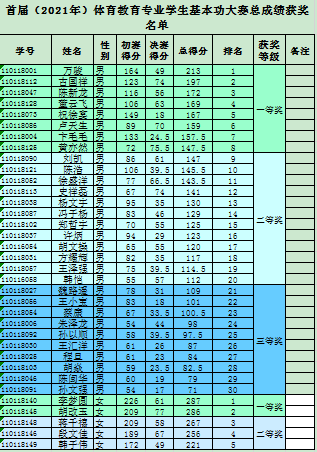 我院顺利举办首届体育教育专业基本功大赛,经过初赛,复赛角逐,从总排名、运动技能和基础理论三方面进行评比,现将拟获奖项目(见附件)予以公示。