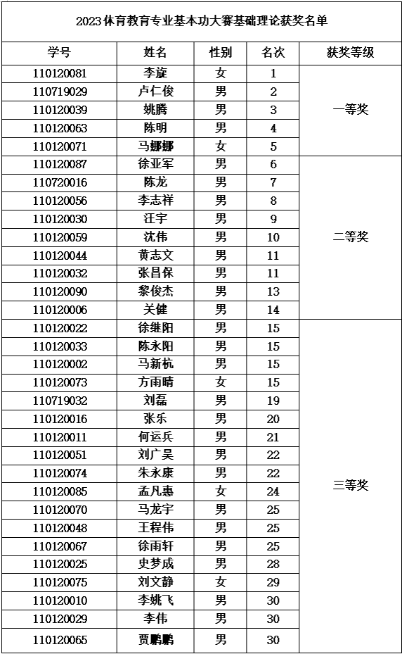 按照体育教育专业基本功大赛竞赛细则,经初赛和决赛环节比拼,现将英国正版365官方网站2023年体育教育专业基本功大赛团体获奖名单、基础理论获奖名单和运动技能获奖名单予以公示。