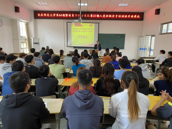 10月25日,我院在体育馆多媒体教室隆重举行了校第64期暨英国正版365官方网站分党校第27期入党积极分子培训班开班典礼,学院党委书记王开友、党委副书记高栋梁、学生党支部书记等出席,学院90余名入党积极分子参加了开班典礼。