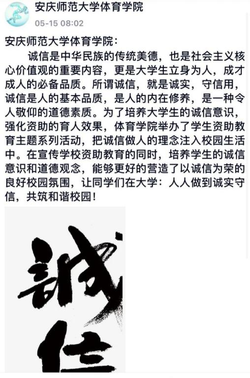 为增强大学生诚信意识,引导学生树立正确的消费观、荣辱观、价值观。根据学校《关于开展2021年学生资助诚信教育主题活动的通知》要求,我院组织开展“诚信资助助学筑梦· 勤奋刻苦励志成才”为主题的资助诚信教育宣传月活动。