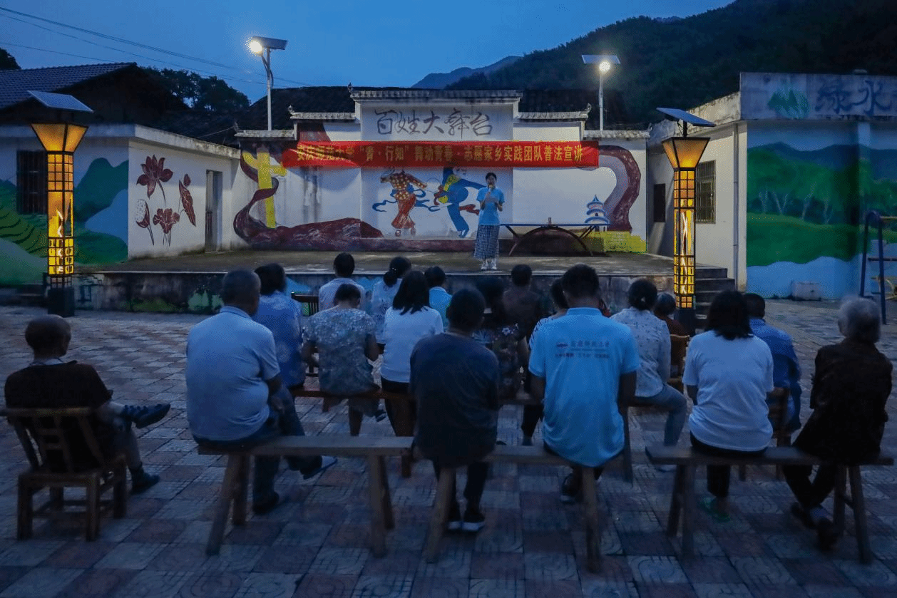 “买到过期食品怎么办?邻居在中午宰杀家禽发出很大噪音怎么办?这些问题我会一一为大家解答。”7月2日傍晚,安庆市太湖县西冲村运动广场出现了一群身着“三下乡”队服的年轻身影,这是英国正版365官方网站“舞动青春,志愿家乡”暑期三下乡实践团成员们为村民带来的一堂别开生面的普法课堂。