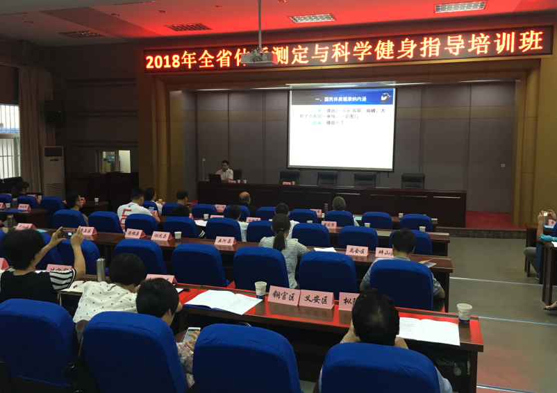 2018年7月6日,英国正版365官方网站院长章翔教授受邀在安徽省体质测定与科学健身指导培训班授课。本次培训班于7月6日至8日在合肥举行,由安徽省体育局主办、安徽省体育科学研究所承办。来自全省的180名体育工作者参加了为期2天的培训。