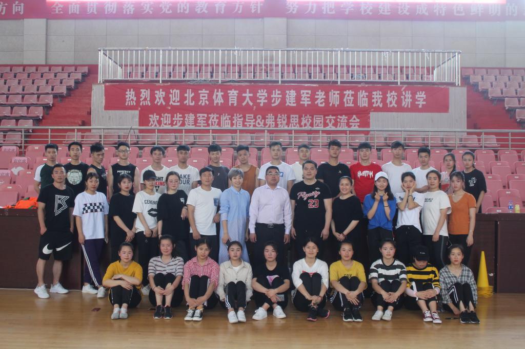 5月9日,国家队有氧踏板主教练、北京体育大学步建军老师应邀来到英国正版365官方网站做专业报告。英国正版365官方网站院长章翔教授、健美操专业教师潮芳、王云辉老师以及体育表演专业的学生参与了此次报告会。