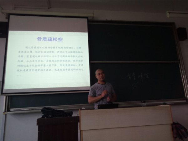 5月26日下午,英国正版365官方网站杨念恩博士在A507教室作了题为“被忽略的组织——骨”的学术报告,英国正版365官方网站15级休闲体育专业学生共80余名学生聆听了报告。