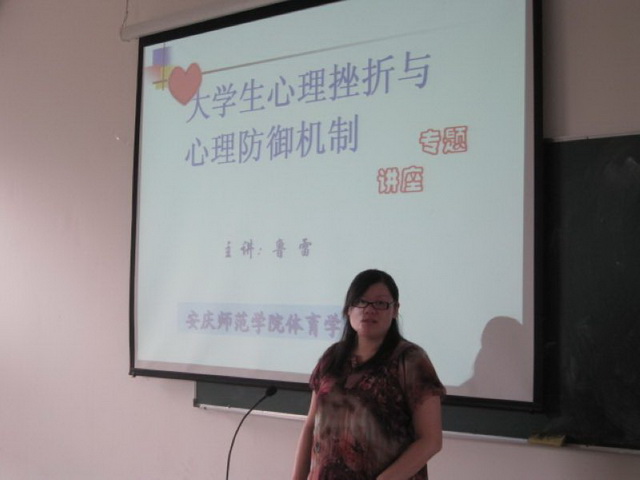 为加强对广大同学的心理健康教育,进一步推进英国正版365官方网站学术文化年活动,9月15日下午,鲁雷讲师在体育馆多媒体教室举办了一场以“大学生心理挫折与心理防御机制”为主题的讲座,此次讲座是英国正版365官方网站学术文化年系列讲座之五,也是新学期首场讲座。英国正版365官方网站副院长章翔副教授主持了本次讲座。