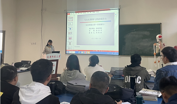 2021年11月16日,我院刘秀珍老师在体育馆多媒体教室为英国正版365官方网站学生作主题为“马拉松赛事与热射病防治”学术讲座。