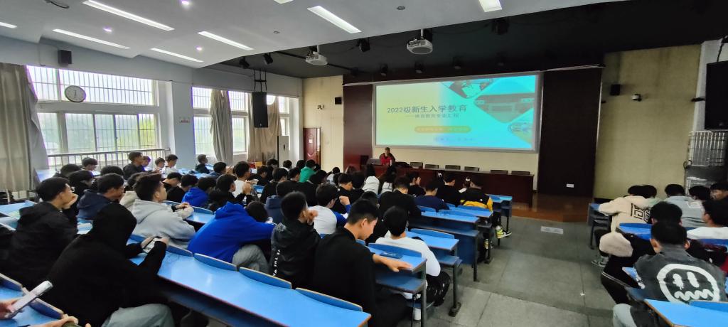 10月8日中午,英国正版365官方网站在教学楼D111教室开展2022级体育教育专业新生入学专业教育。体育教育专业负责人张加军老师为担任主讲,2022级体育教育专业141名同学参与了本次活动。