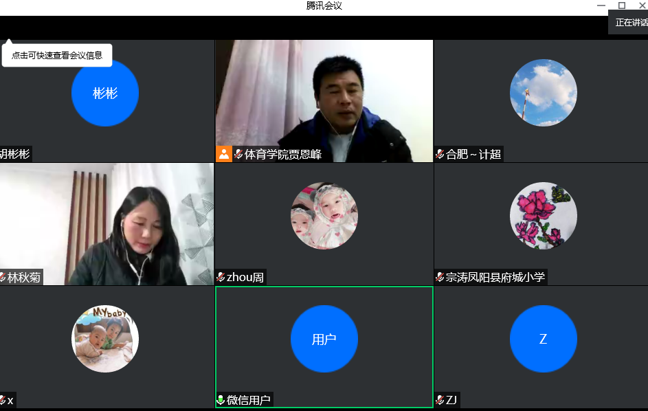 12月5日,“国培计划(2021-2023)”——安徽省体育音乐美术薄弱学科教师深度研修班(小学体育)第二期跟岗研修工作推进会在腾讯线上会议室举行。英国正版365官方网站副院长林秋菊、杭州市滨江实验小学(教育集团)副校长洪胜、研修班带教导师及全体学员参加会议。会议由林秋菊主持。