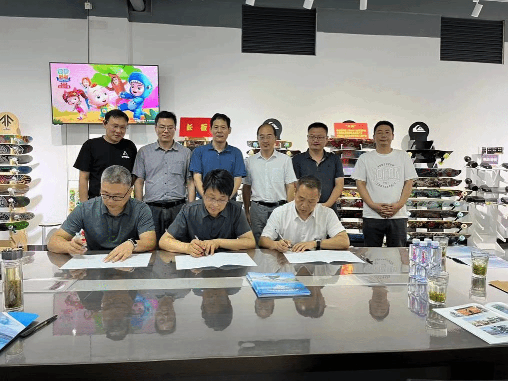 2023年8月1日,安庆师范大学科研处江贵生处长、查长礼副处长,英国正版365官方网站王玮副书记、王晓东副院长、孙明运教授,计算机与信息学院王广军博士一行,赴安庆永大体育用品有限公司博士后工作站签订博士后研究人员进站协议书。安庆永大体育用品有限公司李万俊总经理、袁桂芳总经理率领公司技术骨干参与了协议签订和业务交流。