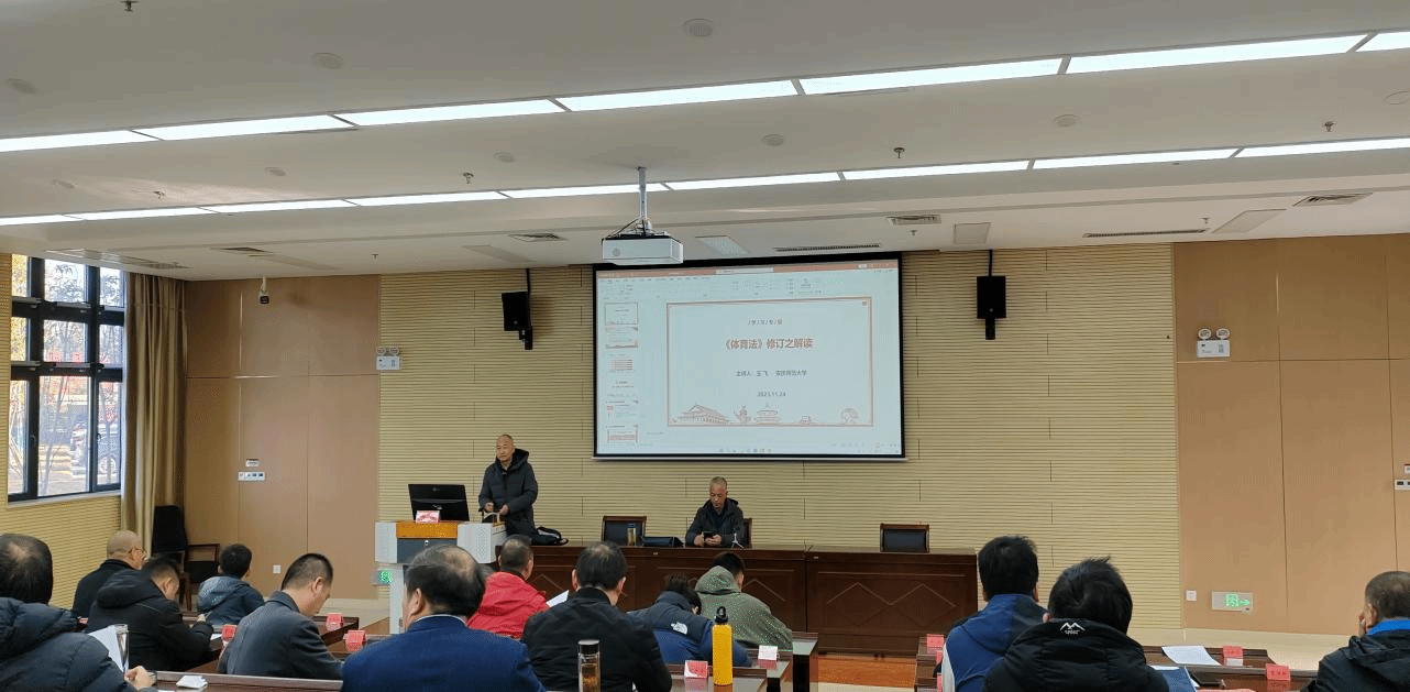 2023年11月24日上午,应安庆市教育体育局邀请,英国正版365官方网站王飞博士为安庆市中小学体育教师与教练员开展了新修体育法的普法讲座。