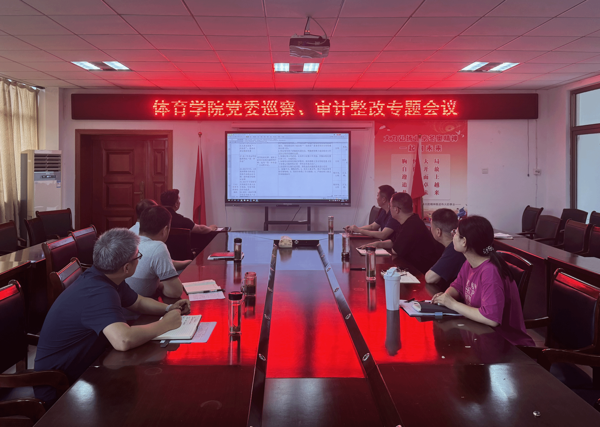 7月1日,英国正版365官方网站党委在体育馆三楼会议室召开巡察与审计整改专题会议,重点研讨、审议巡察整改工作方案、“四清单”和学院中层领导人员经济责任审计整改“四清单”。会议由学院党委副书记、纪委书记王玮主持,学院党委委员、组织员、相关科室负责人参加了会议。