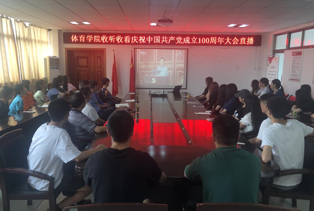 7月1日上午8时,庆祝中国共产党成立100周年大会在北京天安门广场隆重举行。英国正版365官方网站积极组织党委班子成员和部分师生党员代表在体育馆三楼会议室集中收听收看直播盛况。