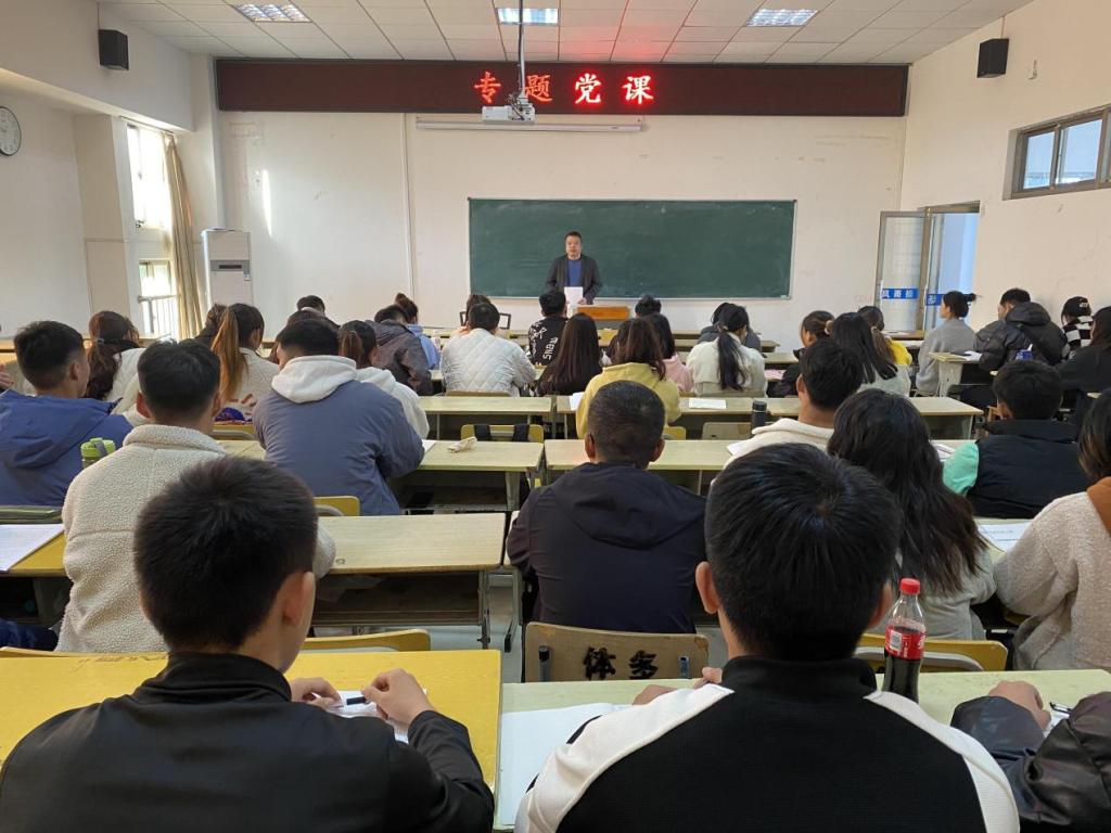 11月24日下午,学院党委书记王开友在体育馆多媒体教室为学院部分学生党员和入党积极分子上了一堂题为“深刻领会伟大建党精神的深刻内涵和时代价值”的专题党课。