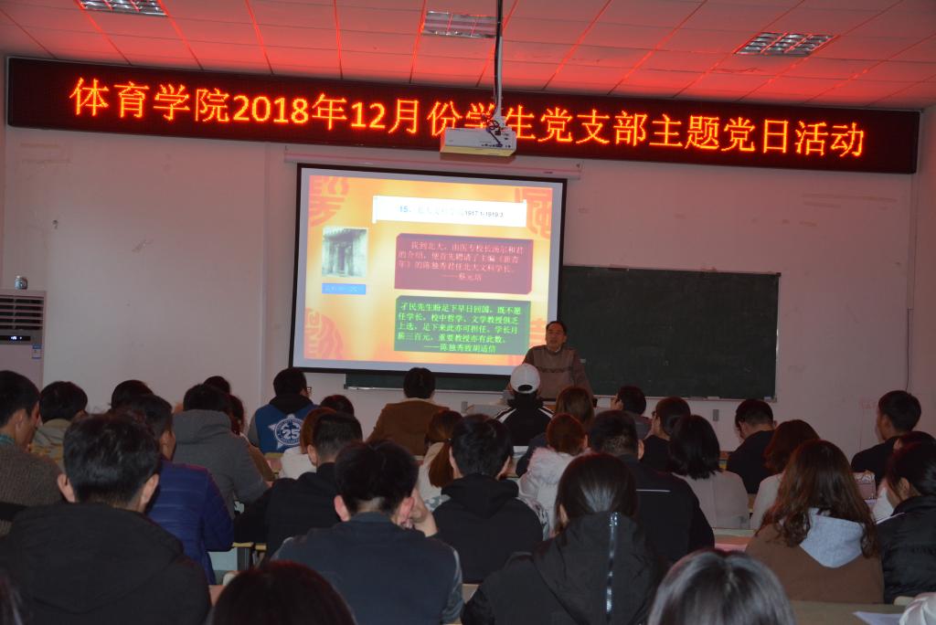 12月5日下午,英国正版365官方网站各学生党支部联合开展12月份主题党日活动。原校皖江文化研究中心主任朱洪教授应邀为学院学生党员、发展对象及本期入党积极分子做“追忆皖江名人,传承红色基因”党课报告。