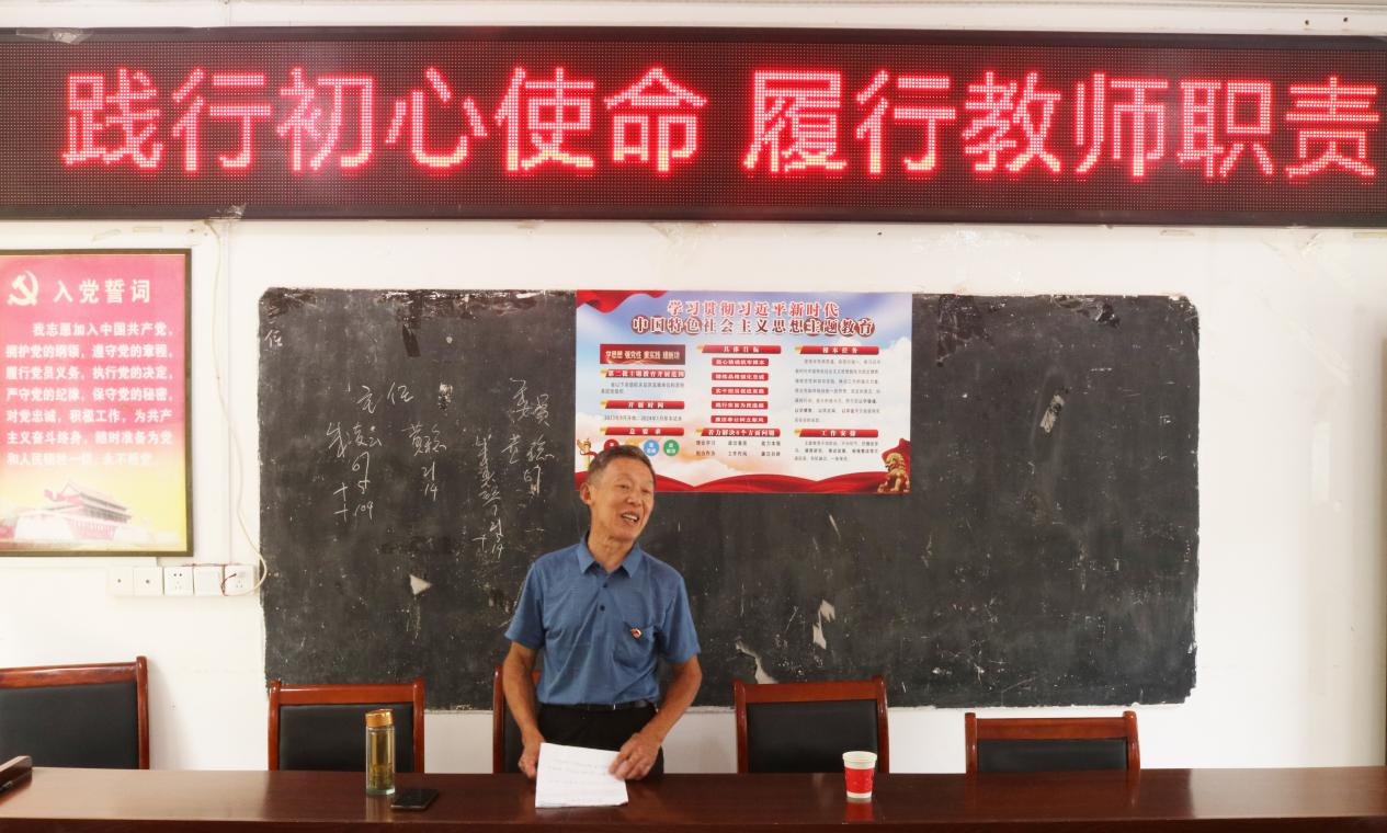 “那个时候教育条件很差,没有专门用来授课的教室,平时的生活用水也要自己挑……”,在太湖县天华镇西冲村的党群服务中心会议室中,69岁的退休教师朱中明这样娓娓道来。7月9日,英国正版365官方网站“青·行知”舞动青春、志愿家乡实践团赴安庆市太湖县天华镇西冲村,开展暑期三下乡实践活动。已经退休的乡村教师朱中明以“践行初心使命,履行教师职责”为主题,为团队成员呈现了一堂别开生面的微党课。