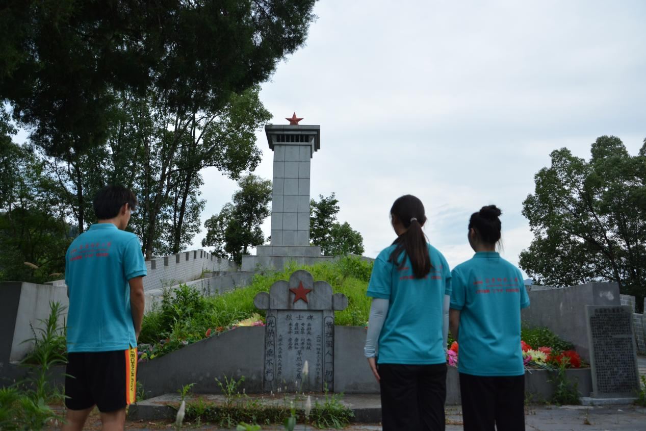 走过蜿蜒曲折的山路,跨过几节斑驳的台阶,一座刻着“人民英雄永垂不朽”的纪念碑跃然入眼,纪念碑旁的墓冢里,长眠着八位革命烈士。7月9日下午,英国正版365官方网站“舞动青春、志愿家乡”乡村振兴暑期社会实践团一行,在太湖县天华镇西冲村驻村第一书记张军、村部工作人员郭鹏的陪同下,来到天华镇马庙烈士墓,缅怀先烈、学习革命精神。