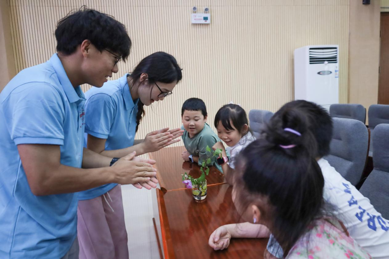 玻璃杯里的“生态系统” 我院学子带领黄镇图书馆暑期托管班儿童体验制作生态缸