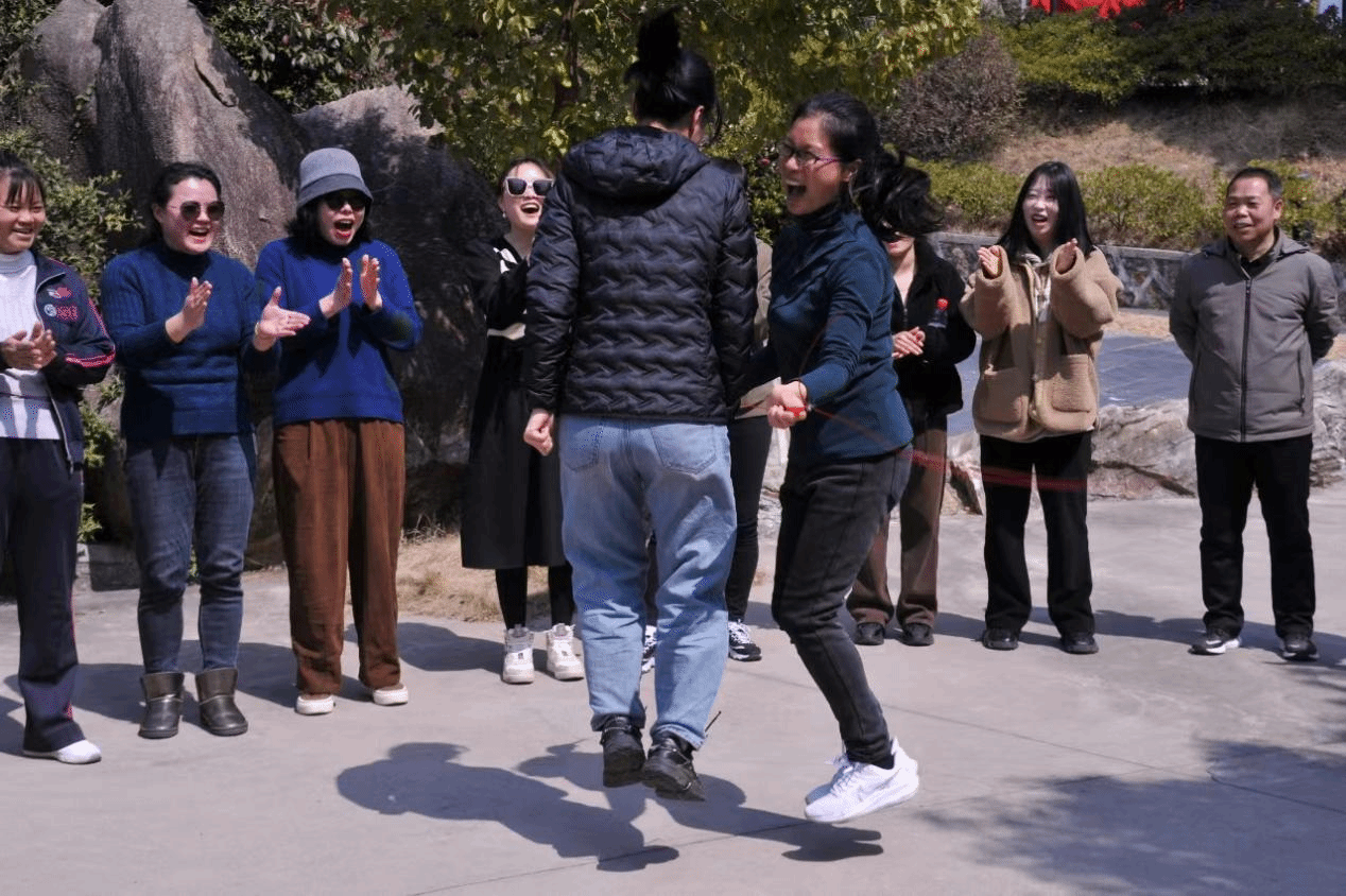 活动期间,学院分工会还在空地上举行了集体拔河、女教工单摇跳绳和双人跳绳等趣味体育比赛。比赛现场气氛热烈,呐喊助威声不断,引来不少游客驻足观看。