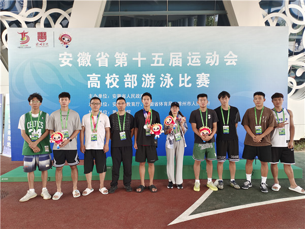 7月19日至21日,由安徽省人民政府主办的省第十五届运动会高校部游泳比赛在滁州落下帷幕。我校代表队9名队员在教练员姚彬彬老师带领下,获得1银3铜,共计5项二等奖和10项三等奖,并获得了体育道德风尚奖。
