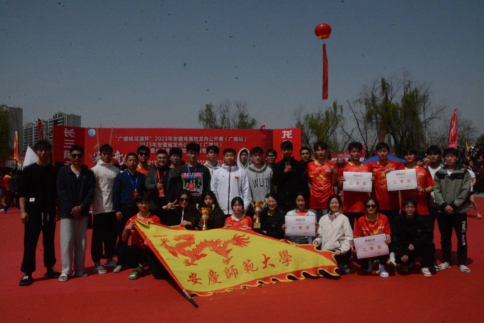 3月25日,2023年安徽省龙舟公开赛、高校龙舟公开赛暨长三角龙舟邀请赛在广德市无量溪河滨河公园擂鼓开赛。安庆师范大学龙舟队在教练员许贵泉教授带领下,获得四项一等奖、七项二等奖和团体总分二等奖的好成绩。
