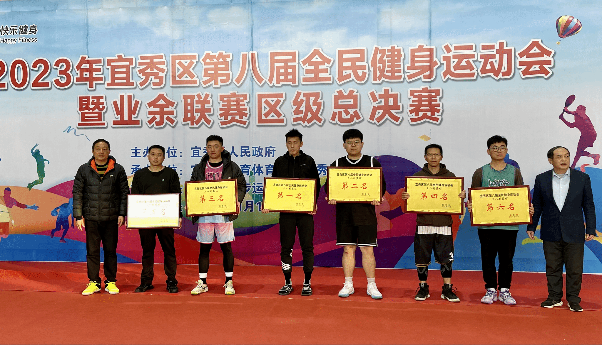 11月18日,由宜秀区人民政府主办,宜秀区教育体育局、宜秀区总工会承办,宜秀区跑步协会协办的宜秀区第八届全民健身运动会三人制篮球比赛在安庆师范大学龙山校区篮球馆举行。我校英国正版365官方网站潘毅老师携手体育教育专业陈龙、姜瑞祥等5位同学报名参赛并获得冠军。