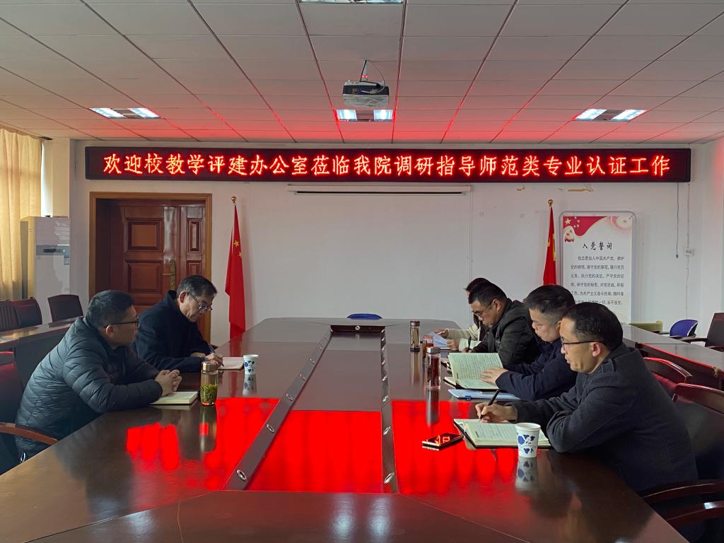 为进一步落实教育部关于师范类专业认证新要求,扎实推进师范类专业认证工作,3月1日下午,校教学评建办公室主任黄兴帅一行来我院进行专项督导。学院领导、专业负责人、教学办公室主任和相关老师参加会议。会议由院长章翔主持。